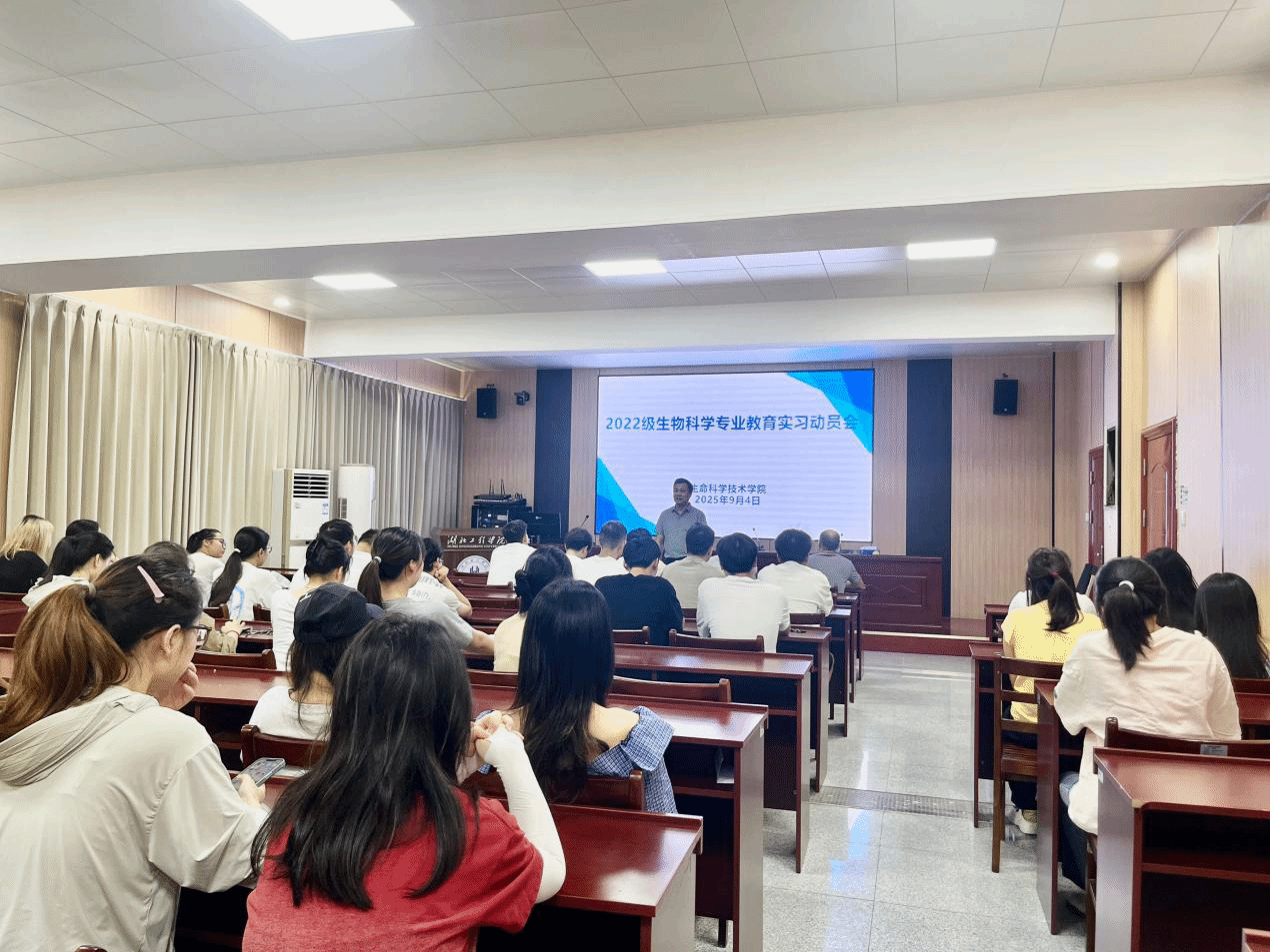 9月4日,2022级生物科学专业教育实习动员会在SK409会议室举行。必威BETWAY官网院长李长春、院长助理张正茂、生物科学与药学系主任周勇、班主任李娟娟及全体参与实习学生参加了动员会。