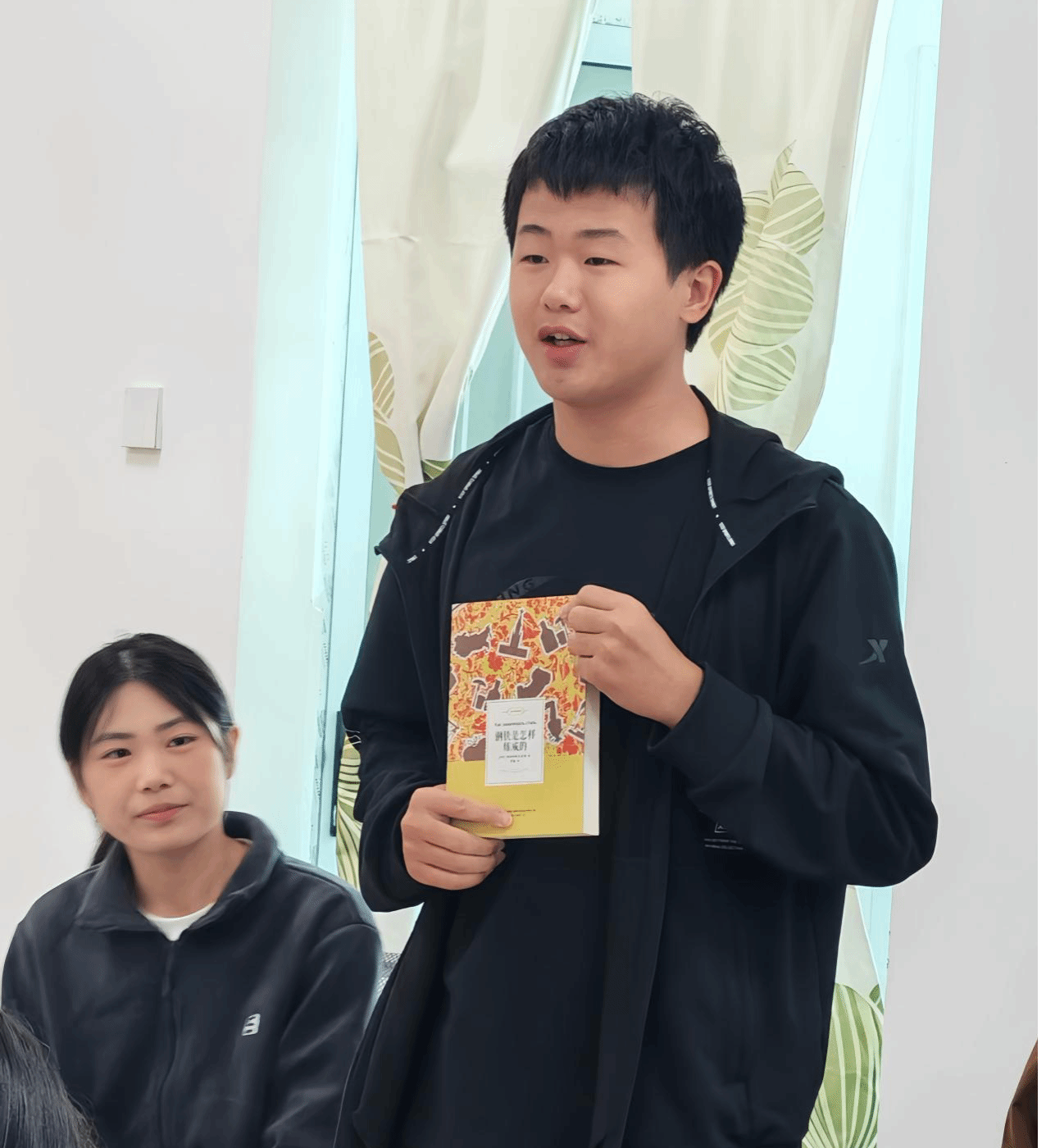 刘涵同学分享《钢铁是怎样炼成的》,以保尔的坚韧为锚点,诠释了“成长是在困境中锚定方向,用执着把挫折锻造成人生的钢骨”;