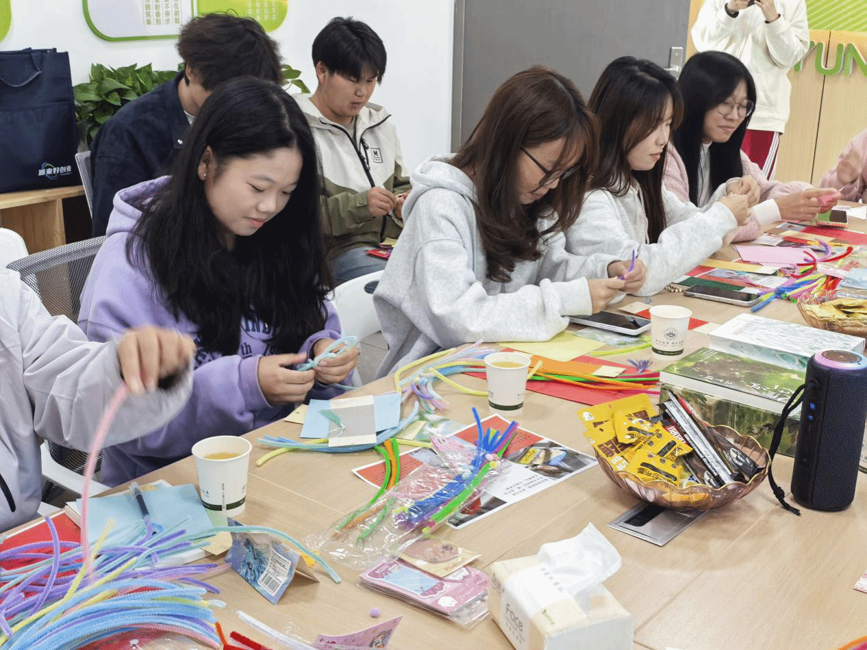 随后的手工共创环节,师生协力制作动植物手工装饰,在动手协作中深化情感联结,现场氛围温馨而宁静,成为整场活动中一抹温暖的亮色。
